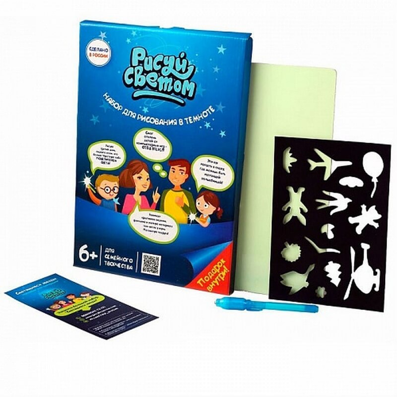- Чтобы играть с набором "Рисуй светом", от ребенка не требуются специальные знания или умения.